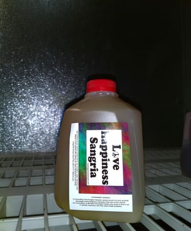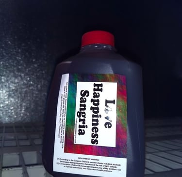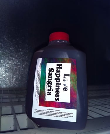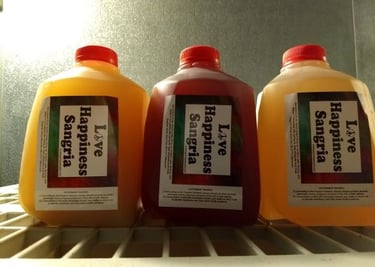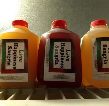 Team Sangria brought Big Girl cups with boba straws, then Love Jugs to festivals and special events. First there was the Love, made with our vineyard produced chardonnay. And, the Happiness, made with our estate produced black currant wine. After our patrons demanded more, we made the Mojo, an incredibly refreshing cooler made with moscato wine.